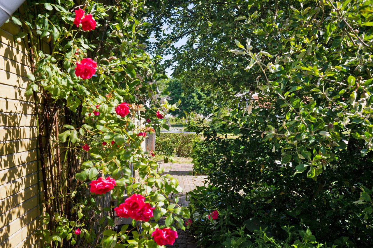 soveværelse, børneværelse samt ældre køkken. Huset ligger på pragtfuld stor ugenert hjørnegrund med