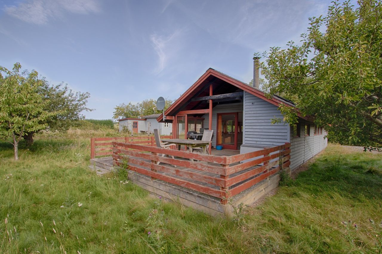 overdækket terrasse samt tilbygget vindfang, 2 udhuse og gæstehus. Grunden er nem og ugenert og