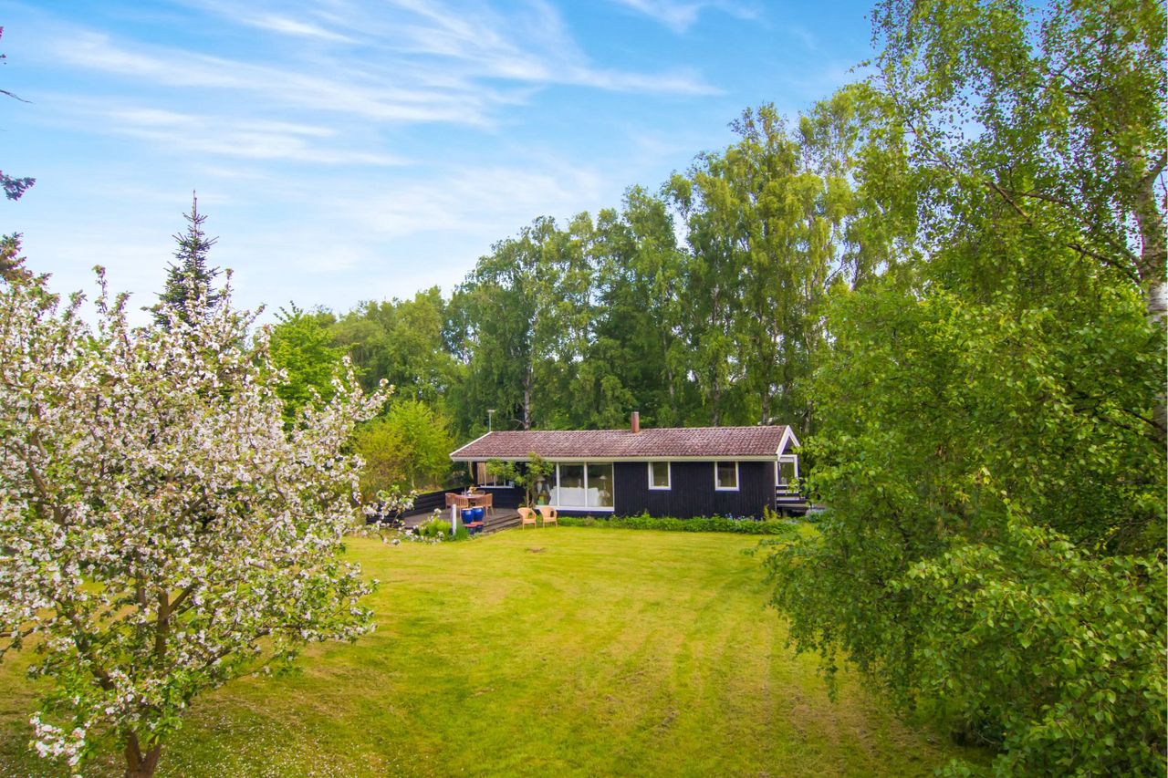 på lidt over 1,600 kvm. og er primært udlagt med græs og er meget nem at holde og her findes nyere stor