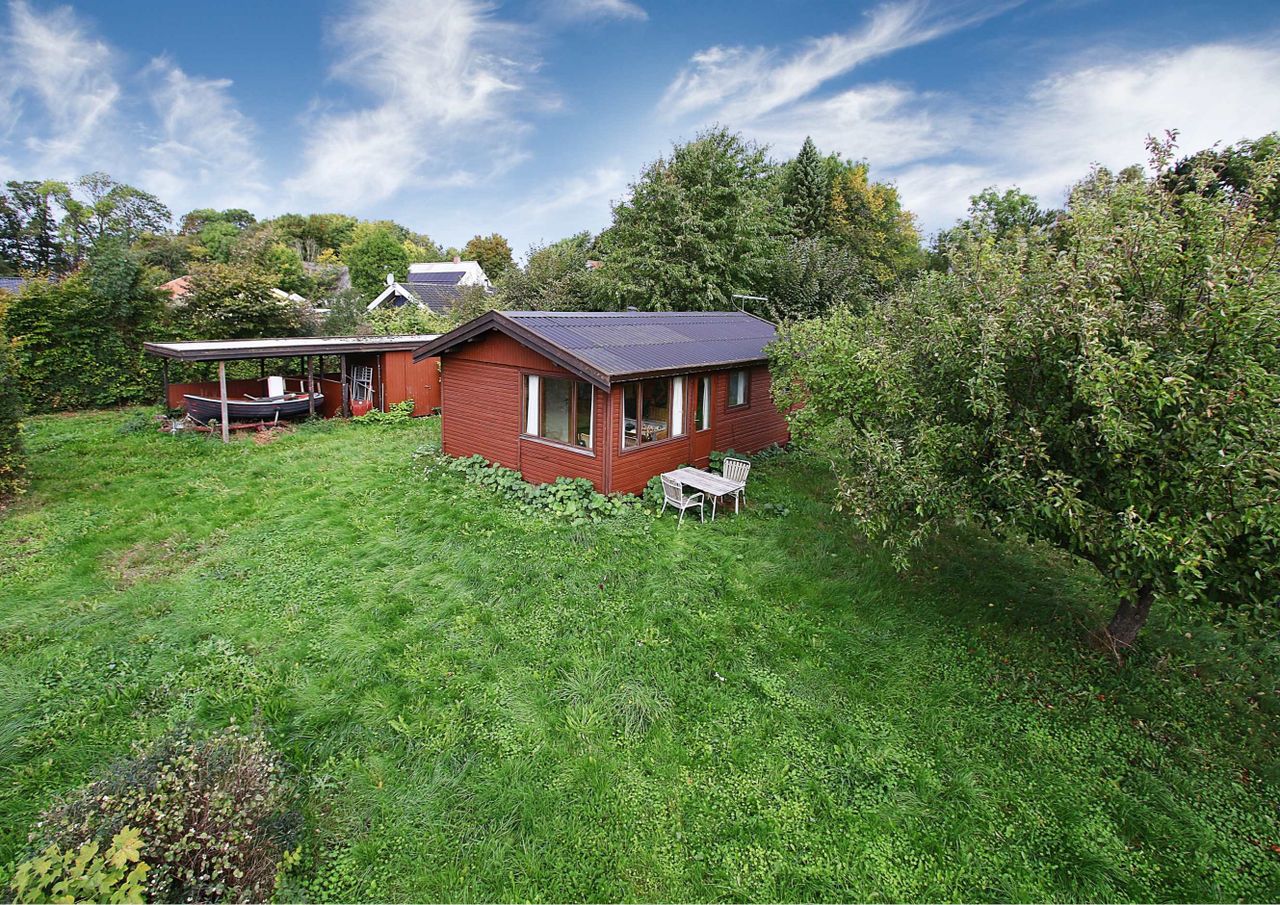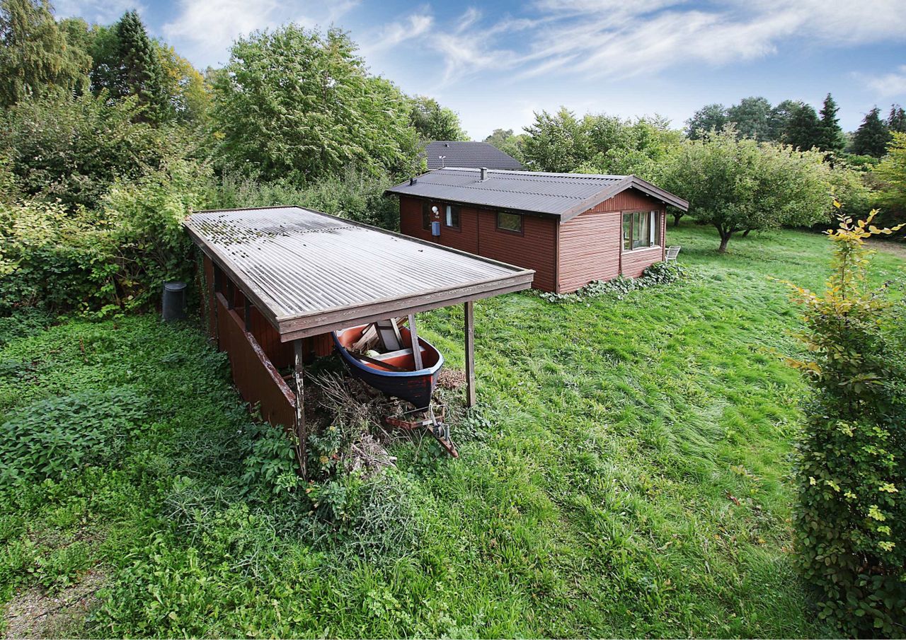 ligger i det eftertragtede sommerhusområde "Strandlund" tæt på motorvejen til København. Ring til