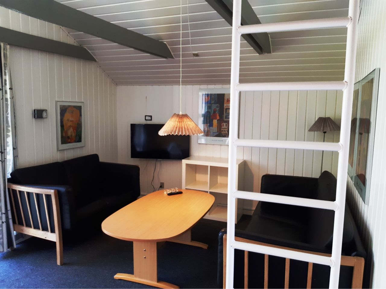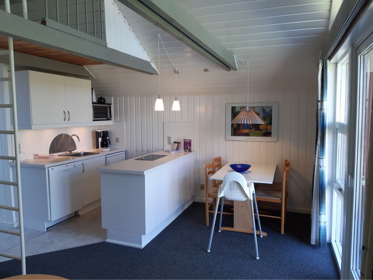 Velholdt Lalandia-hus indrettet med entre, stue og nyere lyst køkken i et med loft til kip og med adgang til