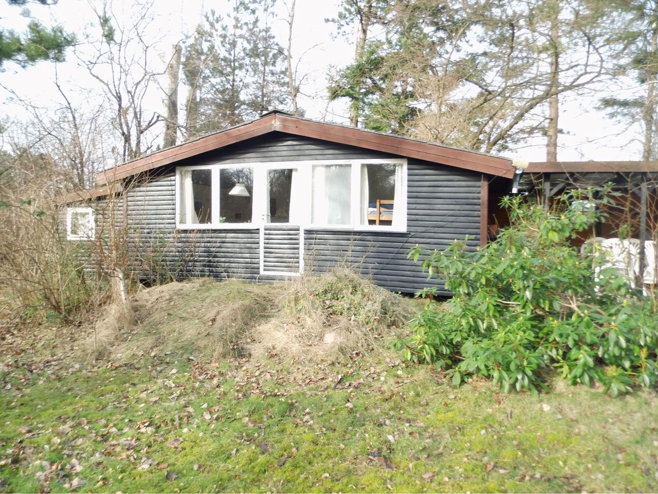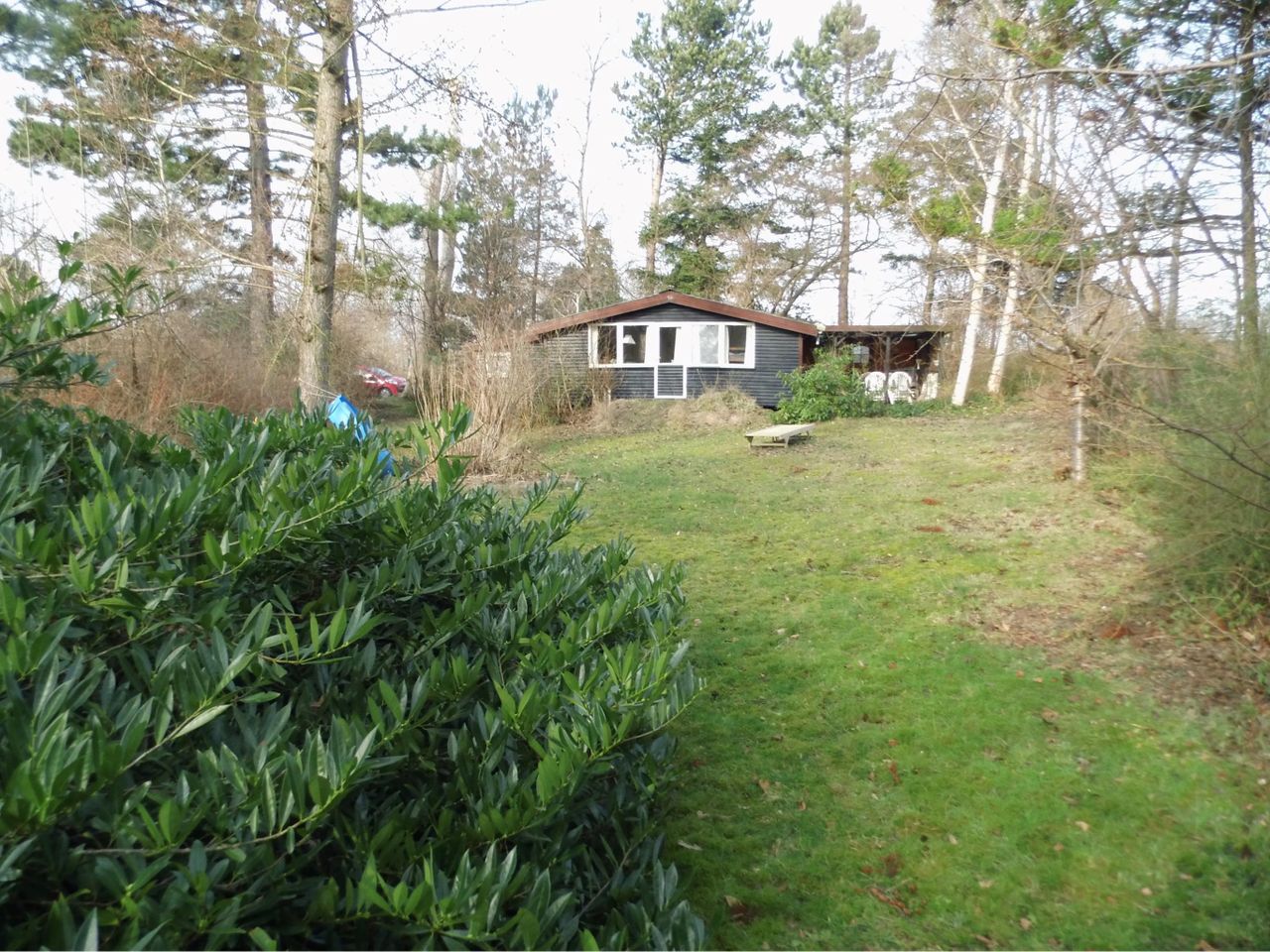 med: Køkken, stue og værelse. På siden af huset findes das og udendørsbrus. I haven står hyggeligt