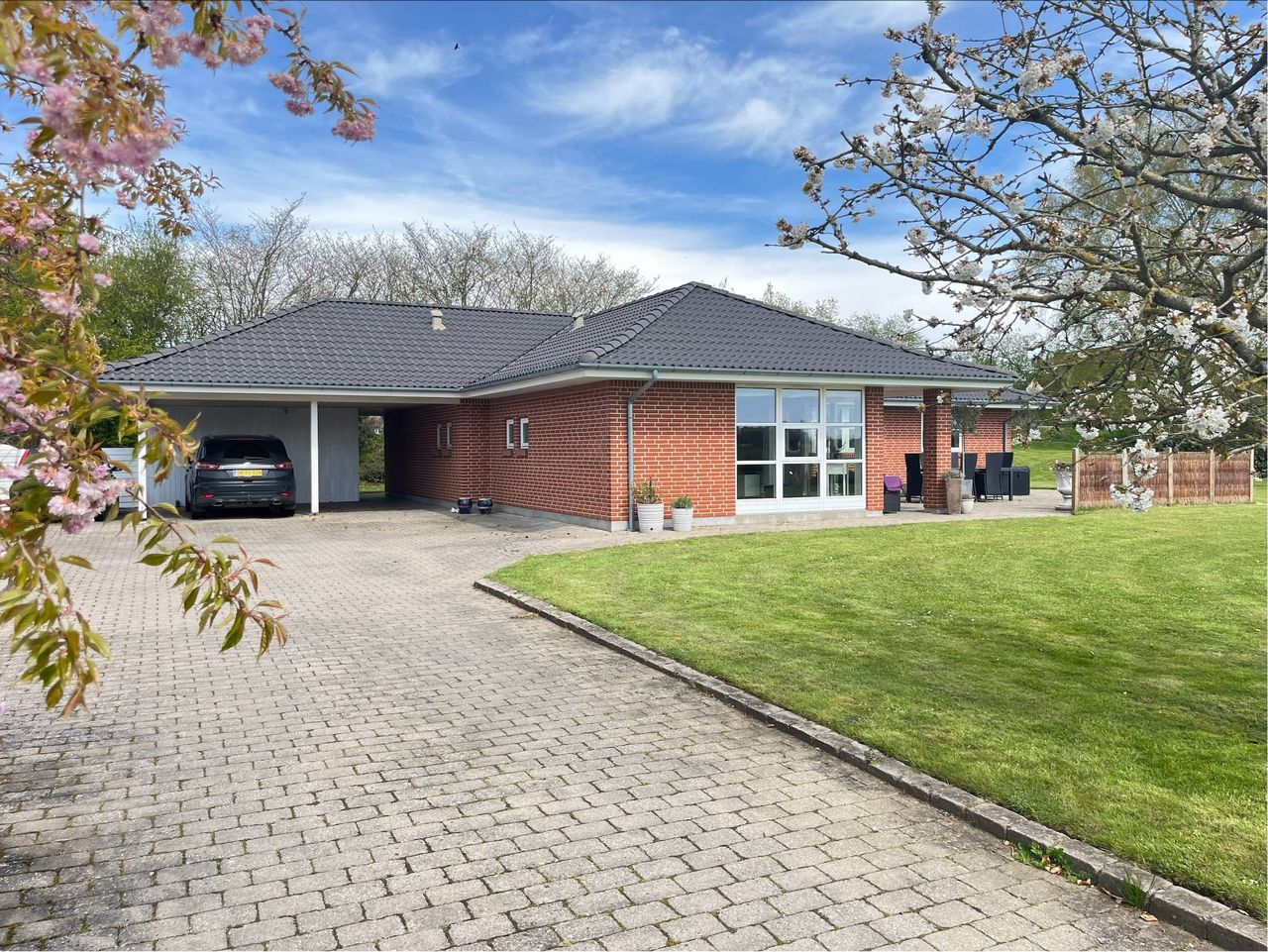 Vinkelbygget villa med flot beliggenhed direkte til åbne arealer
