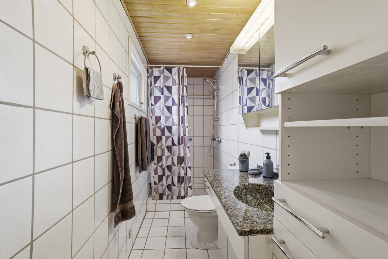 Godt beliggende fritidshus med bebygget areal på i alt 176 m2, hvor af huset er på 107 m2 i boligareal, gæstehus på 12 m2, udestue på 30 m2 og carport på 27 m2. Det hele ligger på en pragtfuld grund på 1193 m2, som er nem at holde. Huset ligger på en let skrånende grund, så der er ingen fare for oversvømmelse. Det indeholder entré, badeværelse med brus, spisekøkken med hvidevarer, stor opholdsstue med brændeovn og varmepumpe og stor spisestue med udgang til udestue. Endvidere 2 store værelser, hvoraf det ene kan deles til 2. Huset fremstår i flot stand ude som inde.